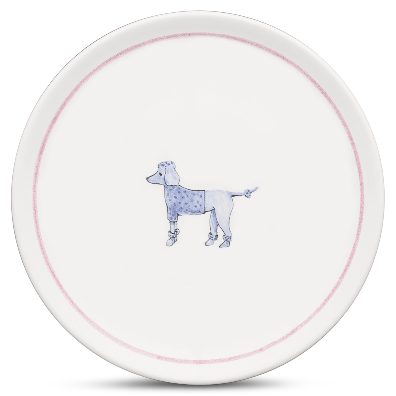 Fayence weiß mit Malerei Pudel Glasur glänzend