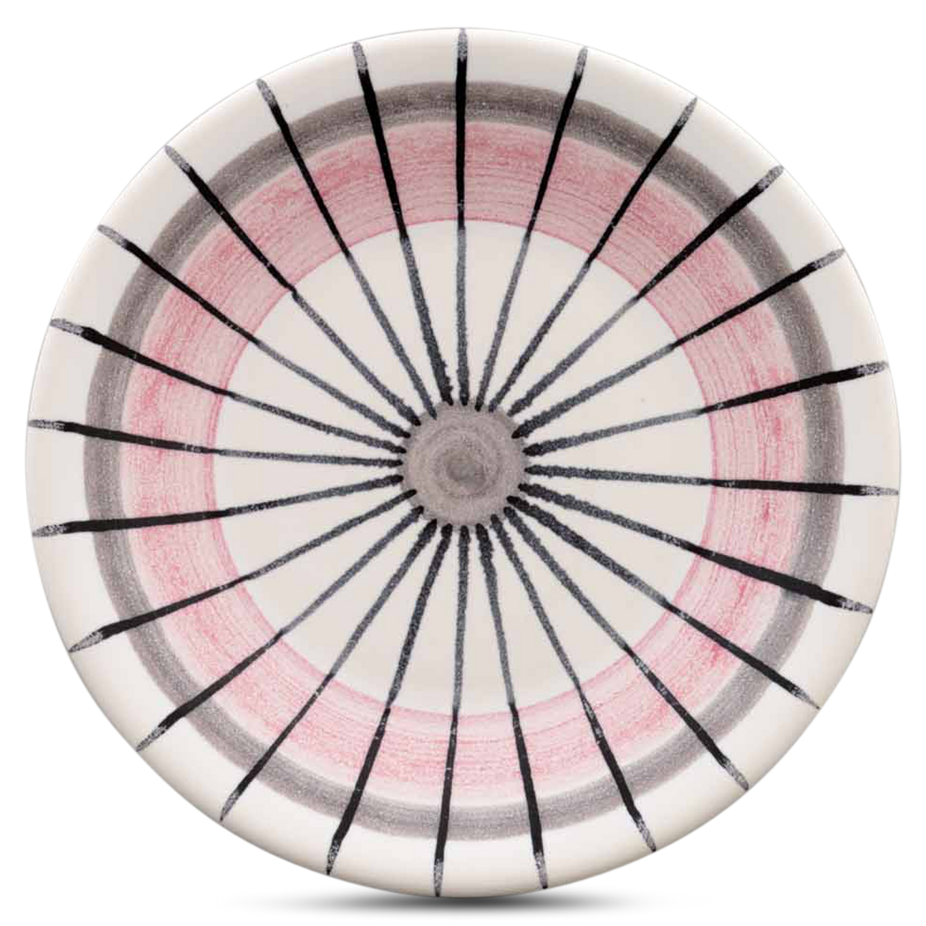 HB faience is created by inglaze painting. After the first firing, a white covering glaze is applied to the ceramics. After drying, our ceramic painters, some of whom were trained by Hedwig Bollhagen, hand-paint their famous colored faience decorations into the glaze. In the so-called smooth firing, the glaze combines with the decor painted with engobe and fixes it. The ceramic "safe" colors form the classics with blue, yellow and black. Red is considered a "volatile color" and often fades in the smooth firing. All colors belong to Hedwig Bollhagen's typical faience decors, which are to be understood as a homage to the farmer's pottery that she so admired.