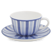 Fayence weiß - blaue und hellblaue Streifen - Glasur glänzend