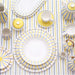 Fayence weiß gelbe Bänder und blaue Striche Glasur glänzend