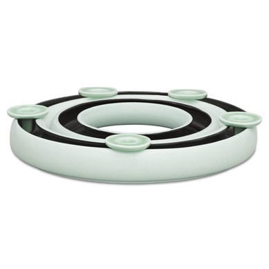 The natural structure of the ceramic is particularly important in the Varius collection. The form is accentuated by a black engobe applied by hand to the still raw body. A colored transparent glaze gives the ceramic an extraordinary depth of decoration in the second firing. The originally black engobed surfaces take on the deepest color tone in the scale of the glaze and form the character and personality of each individual piece. Due to the large number of shape and color variants, the ceramics of the Varius collection can be excellently combined and give the laid table a balanced picture in the colors of summer.