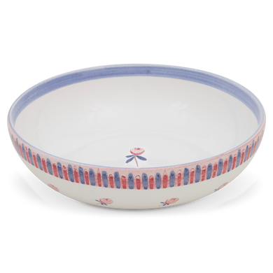 HB faience is created by inglaze painting. After the first firing, a white covering glaze is applied to the ceramics. After drying, our ceramic painters, some of whom were trained by Hedwig Bollhagen, hand-paint their famous colored faience decorations into the glaze. In the so-called smooth firing, the glaze combines with the decor painted with engobe and fixes it. The ceramic "safe" colors form the classics with blue, yellow and black. Red is considered a "volatile color" and often fades in the smooth firing. All colors belong to Hedwig Bollhagen's typical faience decors, which are to be understood as a homage to the farmer's pottery that she so admired.