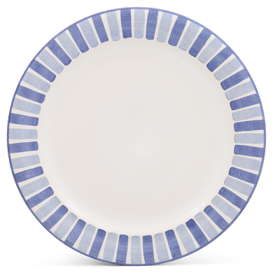 Fayence weiß - blaue und hellblaue Streifen - Glasur glänzend