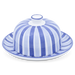Fayence weiß - blaue und hellblaue Streifen - Glasur glänzend