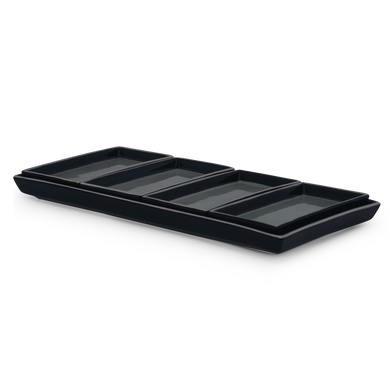 With the 5-piece bowl set HB 538 from Hedwig Bollhagen, you can transform any table into a stylish experience. The set consists of an elegant rectangular plate (HB 540), which, with a length of 34 cm and a width of 16 cm, is ideal for bread, sponge cake, or tapas, and also impresses as an elegant serving platter for roasts or creative arrangements. The serving plate is accompanied by four charming bowls (HB 538), which, with their minimalist design and dimensions of 15 cm x 8 cm, are versatile. Whether for appetizers, small side dishes, or treats – the bowls fit perfectly into any environment. The distinctive design language of the "Kabarett" series combines timeless aesthetics with functional craftsmanship. Handcrafted in the Marwitz workshops, this set illustrates the traditional craftsmanship and attention to detail for which Hedwig Bollhagen has been known since 1934. A set that elegantly enhances your table culture and offers the perfect solution for any occasion.