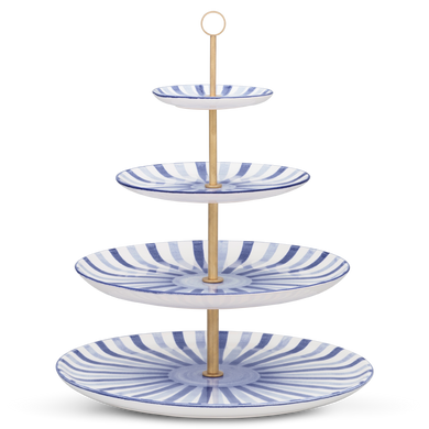Fayence weiß - blaue und hellblaue Streifen - Glasur glänzend