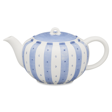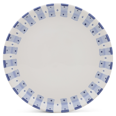Fayence blaue Streifen mit Karos aus Punkten Glasur glänzend