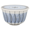 The box by Hedwig Bollhagen with the form number "490" enters into a successful synthesis of art and craft. Beautiful is what works, was the motto. Characteristic are the cylindrical foot, the conical body rounded at the bottom and the flat, round lid. The ceramicist has dispensed with a handle or grips. With a diameter of twelve centimeters and a height of seven centimeters, this can is more wide than high. With a capacity of 0.3 liters, the 360 gram light tin is neither too big nor too small. One thing is for sure, whether cookies, stamps or jewelry, this tin is versatile.