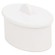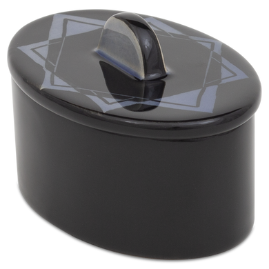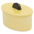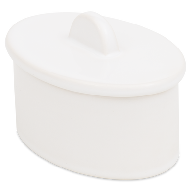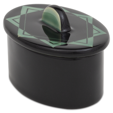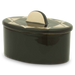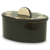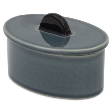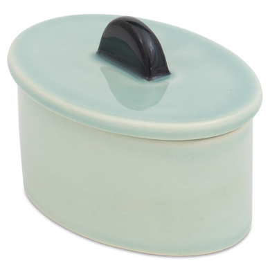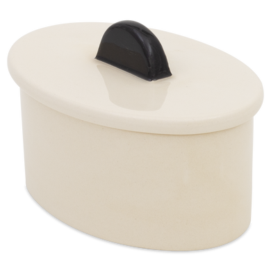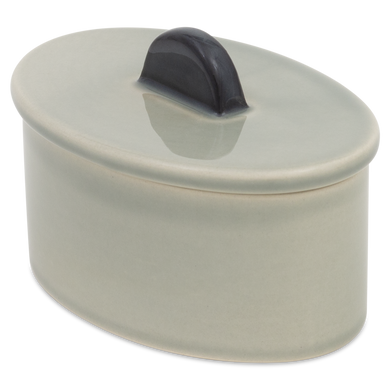 The jar by Hedwig Bollhagen with the shape number "876" captivates with its timelessly appealing design character with a charming nostalgic touch. Typical for the two-piece set, consisting of ceramic jar and closure, are the oval flowing, straight-line body and the flat lid with harmoniously curved, half-cone-shaped handle. With a height of 10 centimeters and a length of 13 centimeters, the shapely ceramic jar is ideal for storing various delicacies and jewelry treasures. The 100 ml capacity and only 190 grams light tin with handle 876 is a handmade unique piece that always sets tasteful accents in the interior and convinces with high functionality.