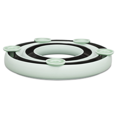 The flower ring with the shape number "735A" by Hedwig Bollhagen is the smallest sister of the medium (735B) and large (735C) flower ring. Its characteristic feature is the ring-shaped body made of robust ceramic, which is open at the top and can be filled with water. With a height of three and a half centimeters and a diameter of 16 centimeters, the flower ring can be filled primarily with smaller flowers and blossoms. Whether daisies, marigolds and pansies in summer or fir greenery in winter, filled with fresh flowers and twigs, the flower ring attracts all eyes at any time of year. As an original table decoration, the small flower ring 735A by Hedwig Bollhagen enhances any table.