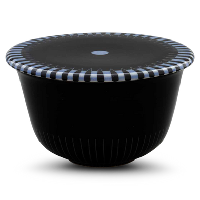 The box by Hedwig Bollhagen with the form number "490" enters into a successful synthesis of art and craft. Beautiful is what works, was the motto. Characteristic are the cylindrical foot, the conical body rounded at the bottom and the flat, round lid. The ceramicist has dispensed with a handle or grips. With a diameter of twelve centimeters and a height of seven centimeters, this can is more wide than high. With a capacity of 0.3 liters, the 360 gram light tin is neither too big nor too small. One thing is for sure, whether cookies, stamps or jewelry, this tin is versatile.