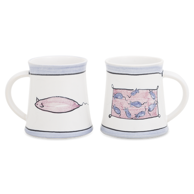 The handmade and painted children's cup from Hedwig Bollhagen with the shape number "565" makes children smile at the breakfast table and also convinces with its multifunctional qualities. Not only does cocoa taste particularly good from the ceramic cup with cheerful decorations and motifs - the beautifully shaped everyday companion also reliably quenches the little ones' thirst in other ways. The 8.5-centimeter-high children's cup has a diameter of 8 centimeters and can be held securely by children's hands thanks to the generously curved handle with optimal feel. Weighing 170 grams, the 565 children's cup is a lovingly designed quality product that can also be excellently combined with other child-friendly tableware such as bread plates, bowls and co. from the Original HB range.