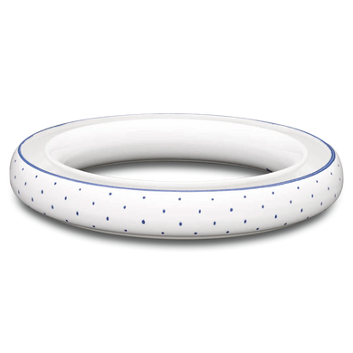 The flower ring with the shape number "735B" by Hedwig Bollhagen is the middle sister of the small (735A) and large (735C) flower rings. Characteristic is the ring-shaped, upwardly open, and water-fillable body made of sturdy ceramic. With a height of four centimeters and a diameter of 26 centimeters, the flower ring has the ideal size for most tables in the house. Whether early bloomers or colorful summer flowers, adorned with a colorful sea of blossoms, the flower ring enhances any ambiance. Even in winter, decorated with fir greenery, cones, or dried flowers, the flower ring draws all eyes to itself. It is green not only in summer but also in winter when it snows.