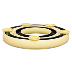 The flower ring with the shape number "735B" by Hedwig Bollhagen is the middle sister of the small (735A) and large (735C) flower rings. Characteristic is the ring-shaped, upwardly open, and water-fillable body made of sturdy ceramic. With a height of four centimeters and a diameter of 26 centimeters, the flower ring has the ideal size for most tables in the house. Whether early bloomers or colorful summer flowers, adorned with a colorful sea of blossoms, the flower ring enhances any ambiance. Even in winter, decorated with fir greenery, cones, or dried flowers, the flower ring draws all eyes to itself. It is green not only in summer but also in winter when it snows.