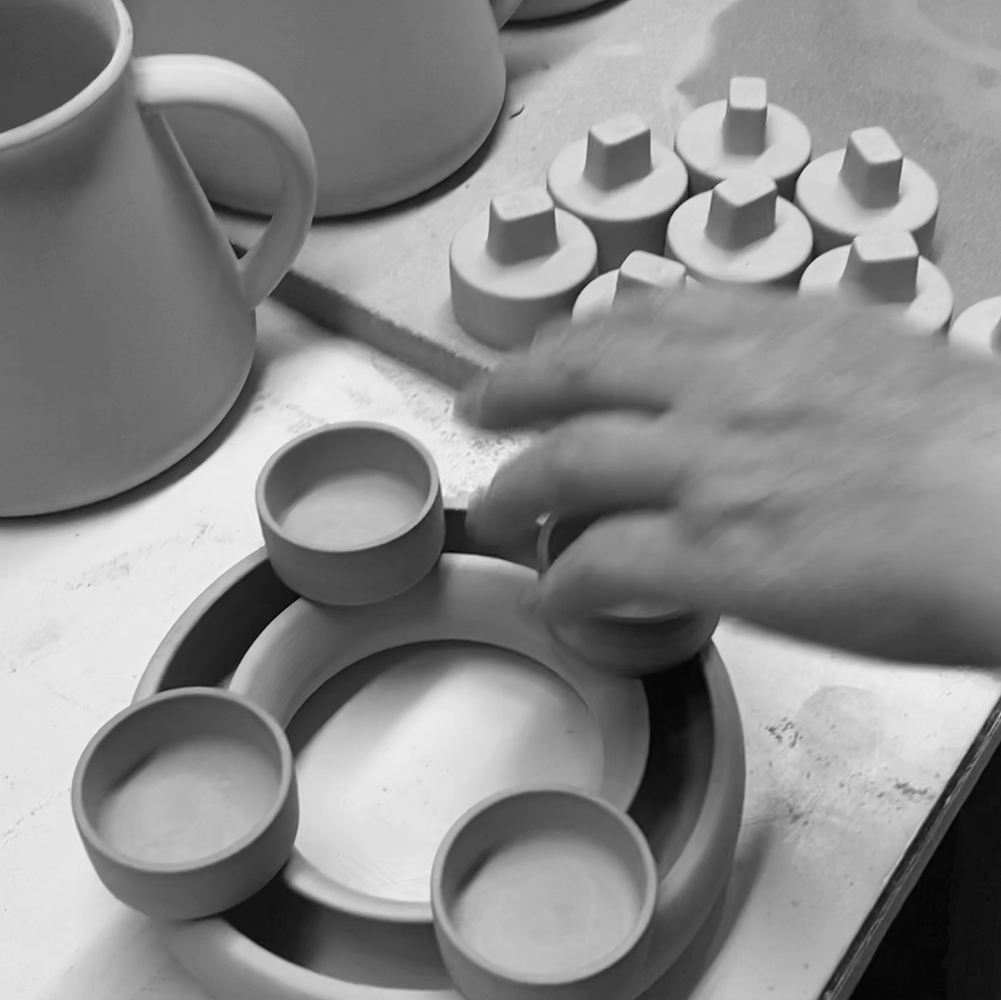 The flower ring with candle holder with the shape number "735B" by Hedwig Bollhagen is the middle sister of the small (735A) and large (735C) flower ring with candle holder. Its characteristic feature is the ring-shaped body made of sturdy ceramic with the four candle holders, which is open at the top and can be filled with water. Its four candle holders quickly turn the flower wreath into a birthday or Advent wreath and create a particularly festive mood. At a height of three and a half centimeters and a diameter of 25.5 centimeters, the flower ring with candle holder can be decorated with flowers or fir greenery to depending on the season and becomes the center of any table.