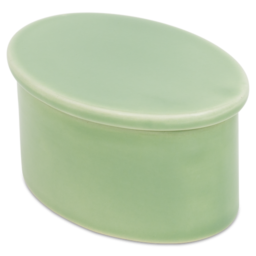 The jar by Hedwig Bollhagen with the shape number "484" impresses with its timelessly appealing design with a nostalgic touch and its multifunctional character. Typical for the two-piece set, consisting of ceramic jar and closure, are the oval curved body growing in a straight line and the flat lid in harmonious flowing contours. With a height and width of 5 centimeters and a length of 9.5 centimeters, the pretty ceramic jar is ideal for storing various delicacies and treasures. The 100 ml capacity and only 150 grams light tin 484 is a handmade unique piece that always sets stylish accents in the interior.