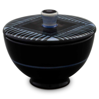 The box by Hedwig Bollhagen with the shape number "549A" is the ideal hiding place for the small treasures of everyday life. Characteristic are the conical foot, the bulbous-ball-shaped body and the flat, round lid with the mounted, cone-shaped knob. With a diameter of nine centimeters and a height of seven centimeters, the box is almost as wide as it is high. And with a capacity of 0.1 liters, the 190-gram can is probably one of the smaller but no less fine cans in the range. One thing is for sure, whether on the kitchen buffet, dresser or nightstand, this ceramic casket will inspire tin romantics to decorate.