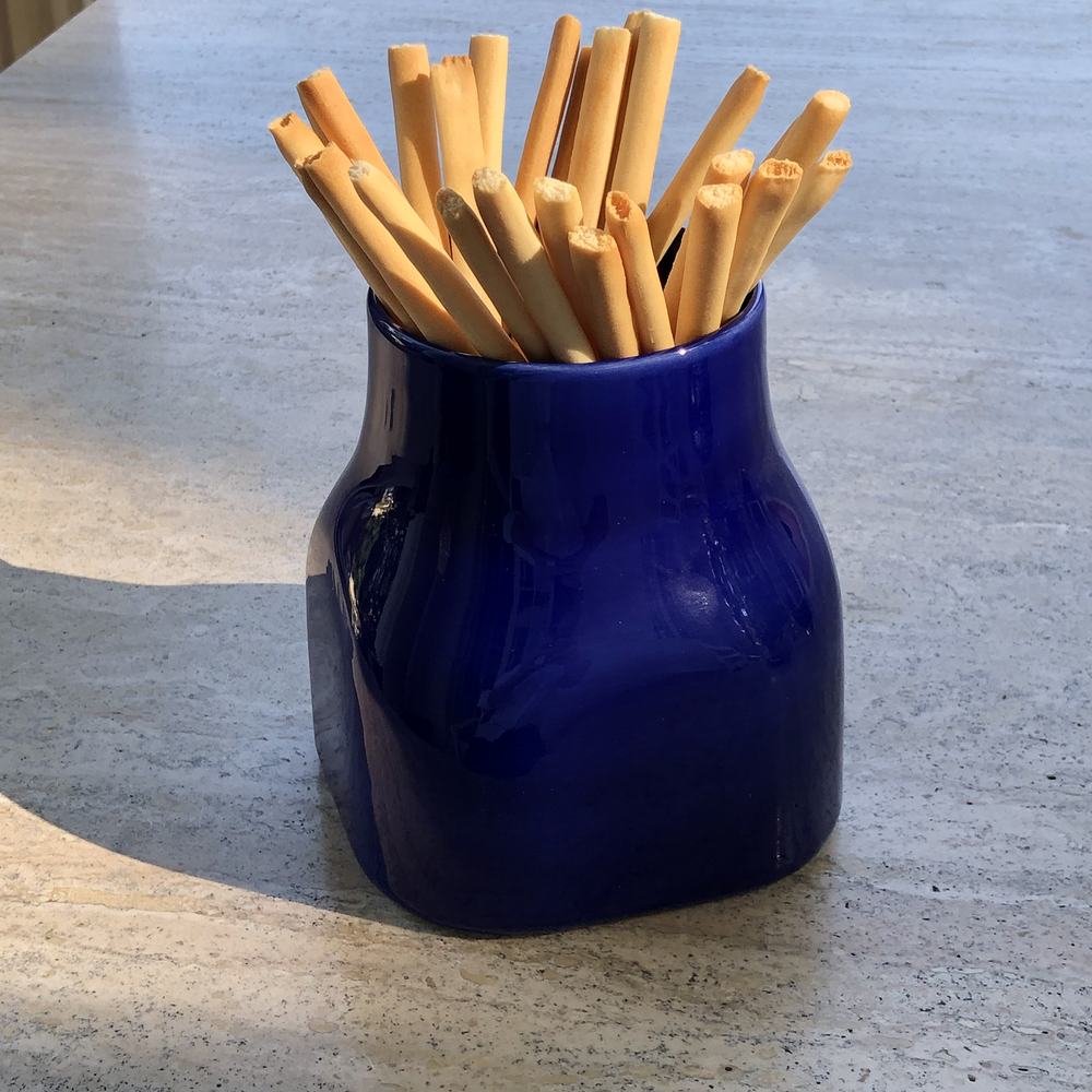 The storage tin with the shape number "595" and affectionately called "elephant foot" by Hedwig Bollhagen because of its shape, is the big sister of the tin 565 and takes on the task of storing kitchen supplies in larger quantities. Characteristic features are the square rounded body, like its little sister, which tapers upwards to form a cylinder and ends with a flat lid that does not have a handle. The square bottom part allows for space-saving arrangement in the kitchen, while the round top part provides a convenient handle. At 12 centimeters wide and 14 centimeters high, the can is almost as tall as it is wide. And with a capacity of one liter, it offers plenty of room for supplies such as coffee, tea, sugar, flour, cereal, pasta and other daily necessities. With its fresh colors, the tin 595 sets stylish accents in your kitchen and your supplies are kept stylish and sustainable, fresh.