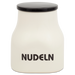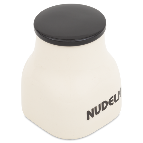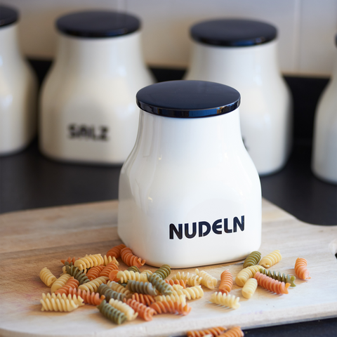 Die Vorratsdose „Nudeln“ mit der Formnummer “595”, liebevoll „Elefantenfuß“ genannt, ist die perfekte Lösung für die stilvolle Aufbewahrung Ihrer Lieblingsnudeln. Mit einem großzügigen Volumen von einem Liter bietet die Dose ausreichend Platz für eine gute Portion Fusilli, Farfalle oder Penne und schützt diese zuverlässig vor Feuchtigkeit. Der charakteristische, abgerundete Rumpf verjüngt sich nach oben hin zu einem zylindrischen Abschluss und wird von einem flachen, grifflosen Deckel verschlossen – praktisch und zugleich elegant. Die schwarze Aufschrift „NUDELN“ verleiht der Dose einen charmanten, klaren Look, der sich mühelos in jede Küchengestaltung einfügt. Es gibt diese Dose noch für zahlreiche weitere Küchenvorräte wie Mehl, Zucker oder Müsli und in einer kleineren Variante mit der Formnummer “556”, die sich bestens für Gewürze und kleine Zutaten eignet.