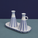 The three-part vinegar-oil set HB 539 combines modern design with traditional craftsmanship and brings stylish elegance to your dining table. The two handcrafted flacons – HB 539 and HB 539O – impress with their pyramid-shaped silhouette that tapers to a narrow neck. The flacon HB 539 convinces with its simple, sculptural form and can be used versatilely as a vinegar or oil bottle, fragrance flacon, or small vase. The flacon HB 539O complements the set with a practical handle for easy pouring and a removable natural cork that keeps the contents fresh. The ensemble is completed by the Plate HB 486, which, with its elliptical shape, forms an elegant base for the flacons and is ideal for serving spices or small delicacies. Since 1934, these timeless ceramics have been handcrafted in the Hedwig Bollhagen workshops in Marwitz – for the highest quality and artistic elegance on your table. Perfectly combinable with our salt and pepper shakers, labeled spice jars, or a matching butter dish for a harmonious table arrangement. Discover our entire range of handcrafted Tableware and bring artisanal elegance into your everyday life.