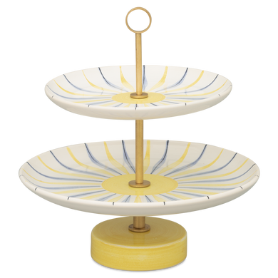 The two-tiered étagère with model number “611B” by Hedwig Bollhagen is the smaller version of the three-tiered 611C and the four-tiered 611D, bringing classic charm and elegance to the table. The defining feature of these étagères is the open frame with several plate-shaped tiers that gradually widen toward the bottom. The continuous brass rod connecting all tiers, featuring a circular handle at the top, lends the design a touch of sophistication and ensures stability. Standing 24 cm tall with a diameter of 23 cm, this frame—a style beloved since the Baroque era—offers two tiers that are perfectly suited for stylishly presenting fruit, pastries, or small chocolates. Hedwig Bollhagen’s multi-tiered étagères allow you to stylishly present fruit and all kinds of small delicacies. Complete your table setting with additional table accessories, tableware, and serving dishes, and bring a smile to your children’s faces with the lovingly painted children’s tableware. Each piece is handmade in the HB ceramics workshops in Marwitz and has combined timeless aesthetics with traditional craftsmanship since 1934.