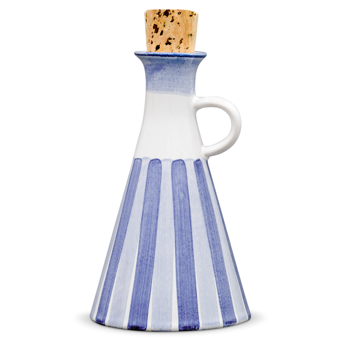 The flacon by Hedwig Bollhagen with the shape number "539-O" convinces with a puristic elegance with practical refinements. Thanks to a height of 13 centimeters and a width of 8 centimeters, the handmade ceramic vessel with removable natural cork is ideal as an elegant vinegar and oil bottle, but also always sets successful accents for various other uses. Characteristic is the pyramid-shaped upward growing body with a capacity of 150 ml, which narrows to a narrow neck with rounded handle attached to the top. The 160-gram bottle 539-O with handle and natural cork is a handmade unique specimen, which with its harmonious contours enhances any table decor in an eye-catching way.