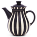 The coffee pot with the shape number "1065A" by Hedwig Bollhagen guarantees the highest enjoyment of various hot drinks with an extra portion of nostalgic aesthetics. The 15-centimeter-high and 10-centimeter-wide coffee pot has ideal dimensions to become the focal point of any coffee table without taking up much space. The classic bulbous shape of the coffee pot made of handmade ceramic contours as a harmoniously curved pear shape and has a capacity of 600 ml. The round curved jug handle moves in strong character contract to the angular shaped knob of the jug lid. Weighing only 350 grams, the coffee pot from the HB-Ritz series is a noble serving vessel that sets the right accents for any occasion.