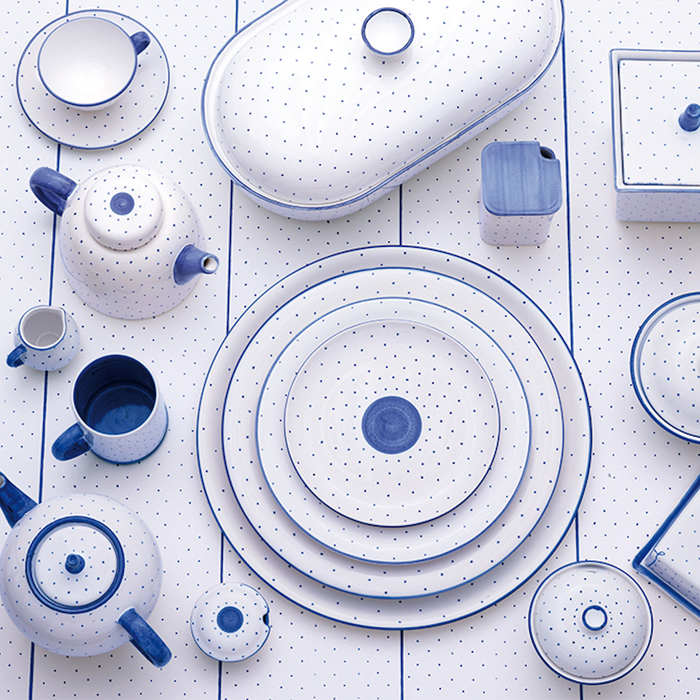 The coffee pot with the shape number "1065B" from Hedwig Bollhagen guarantees the highest enjoyment of various hot drinks and convinces with a classic design that spoils the taste of all vintage fans. The 18.5 centimeter high and 12.5 centimeter wide pot made of solid ceramic has a generous capacity of 1.25 liters. This means that the coffee pot, which weighs only 550 grams, has the potential to function as a practical as well as shapely serving vessel for coffee tables and the like. The nostalgically inspired, bulbous shape of the coffee pot contours itself as a harmoniously curved pear shape. The round curved jug handle moves in strong character contract to the angular shaped knob of the jug lid. The traditionally hand-made and hand-painted jug of the HB-Ritz series always sets the right accents for many occasions.