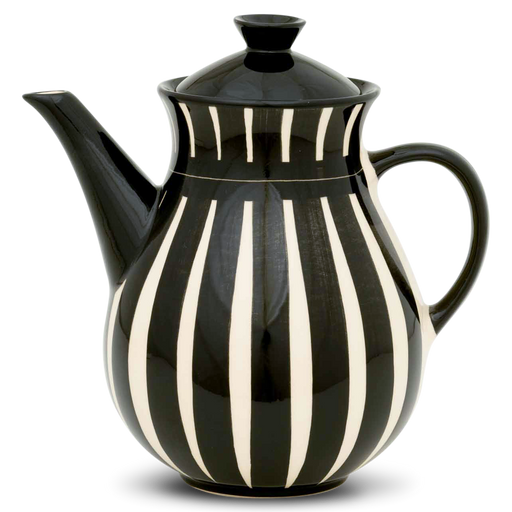 The coffee pot with the shape number "1065B" from Hedwig Bollhagen guarantees the highest enjoyment of various hot drinks and convinces with a classic design that spoils the taste of all vintage fans. The 18.5 centimeter high and 12.5 centimeter wide pot made of solid ceramic has a generous capacity of 1.25 liters. This means that the coffee pot, which weighs only 550 grams, has the potential to function as a practical as well as shapely serving vessel for coffee tables and the like. The nostalgically inspired, bulbous shape of the coffee pot contours itself as a harmoniously curved pear shape. The round curved jug handle moves in strong character contract to the angular shaped knob of the jug lid. The traditionally hand-made and hand-painted jug of the HB-Ritz series always sets the right accents for many occasions.