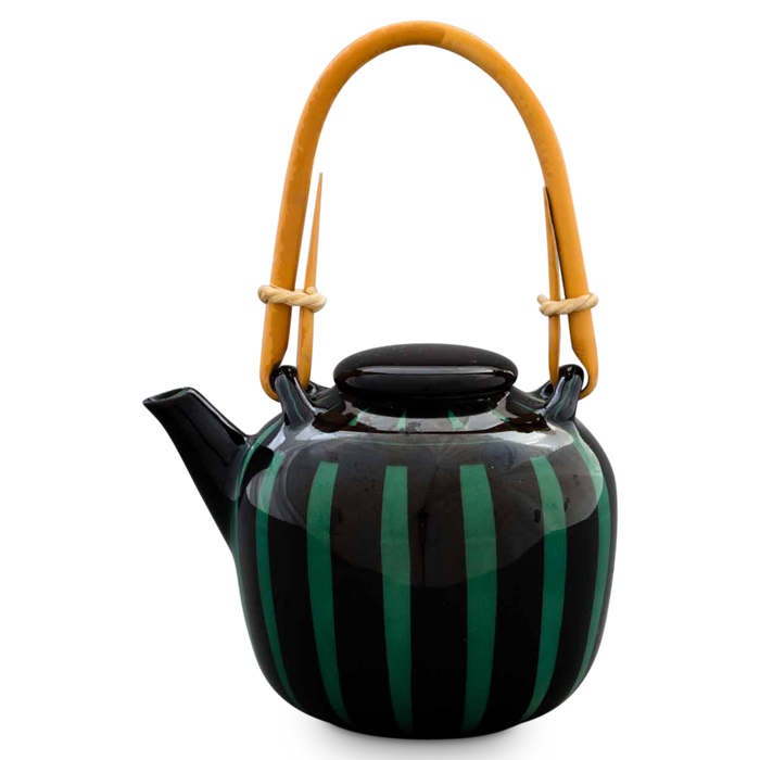 The teapot with the shape number "11150" from Hedwig Bollhagen brings the world of enjoyment of Darjeeling, Matcha, Ceylon and Co. to full advantage. The puristic design of the bulbously shaped teapot is accentuated by harmoniously curved contours that perfectly harmonize coziness and good taste. A simple spout with a drip-proof snout and the flat, rounded lid blend fluidly into the timeless design concept. The generous bast handle lends the nine-centimeter-high as well as wide 11150 teapot a quaint charm. Weighing only 190 grams, the handmade ceramic teapot has a capacity of 150 ml and is always perfect for delightfully celebrated tea moments.