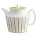 Fayence weiß gelbe Bänder und blaue Striche Glasur glänzend