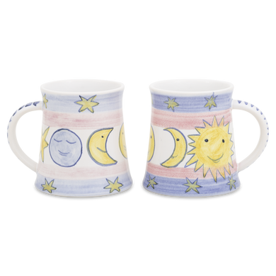 Fayence weiß mit Sonne Mond und Sterne Glasur glänzend