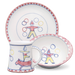 The 3-piece children's dinnerware set by Hedwig Bollhagen offers everything little gourmets need at the table and makes every meal a pleasure. It consists of a child-friendly plate (Form 502), a practical bowl with small handles (Form 591), and a lovingly designed cup with a child-friendly handle (Form 565). Each piece is handcrafted in our manufactory in Germany and decorated with fun and cute motifs that delight children and bring a smile to their faces. Eating from these cheerful ceramics, which are ideal for little hands, is even more fun! Durable, dishwasher safe, and perfect for everyday use – a joyful Set, that children love to eat from! Complement the set with a matching egg cup, so that the breakfast egg brings even more joy, or a butter dish, which is perfect for morning snack fun. A small jug for milk or cocoa also completes the children's breakfast.
