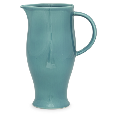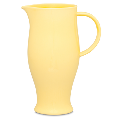 The jug with the shape number "495" one of the first pieces in Hedwig Bollhagen's collection in 1937 convinces with its clear, elegant shape. Characteristic is the slightly bulged body in the middle with the wide, open neck. The semi-circular handle, hinged about a centimeter below the top rim, and the diametrically opposed, outward-facing, drip-proof snout round out the timeless design. At 27 centimeters high and 13.5 centimeters wide, the pitcher is twice as tall as it is wide. And with a capacity of two liters, this pitcher is already one of the larger ones in Hedwig Bollhagen's ceramic assortment. Today, a water jug belongs again on every table of a family that wants to combine sustainability with good design.