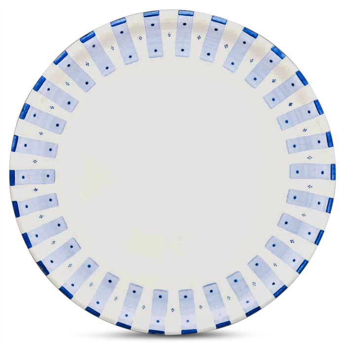 Fayence blaue Streifen mit Karos aus Punkten Glasur glänzend