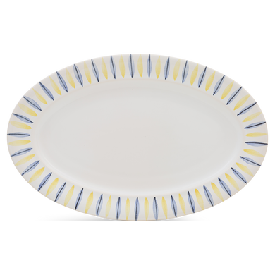 Die große ovale Platte HB 507B ist ein echter Blickfang auf jedem Tisch und bietet reichlich Platz für Ihre kulinarischen Highlights. Mit einer Länge von 31,5 cm und einer Breite von 20 cm eignet sie sich ideal für Braten, Fischgerichte, großzügige Beilagen, Kuchen und viele weitere Köstlichkeiten. Dank ihrer flachen Höhe von 2 cm lassen sich Speisen elegant anrichten und einfach servieren. Handgefertigt in den Hedwig Bollhagen Werkstätten, verbindet diese Platte traditionelle Handwerkskunst mit zeitloser Eleganz. Ob für festliche Anlässe oder den täglichen Gebrauch, sie verleiht jedem Gericht eine exklusive Note und wird zum unverzichtbaren Begleiter auf Ihrem Esstisch.