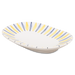 Fayence weiß gelbe Bänder und blaue Striche Glasur glänzend