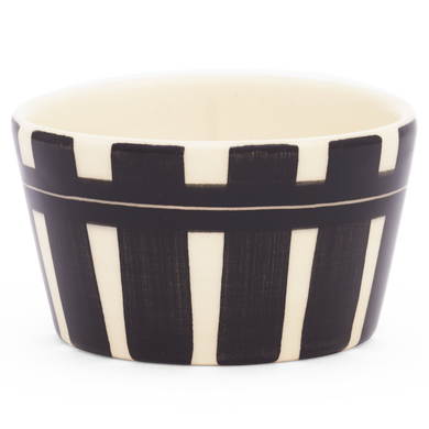 The sugar bowl by Hedwig Bollhagen with the form number "588" combines modern and nostalgic form elements to a timeless charisma. Characteristic is the cylindrical contour scheme of the vessel, slightly convex towards the top, whose soft shape drawing creates an extremely harmonious effect. The four-centimeter-high bowl of handmade ceramic has a diameter of seven centimeters, making it almost twice as wide as it is high. With this size stackable and extremely versatile combinable ceramic bowls offer not only as appealing vessels for sugar or spices - the 80 gram light manufactured product can also be used as a cereal and dessert bowl or as a bowl for decoration as well as various other things.