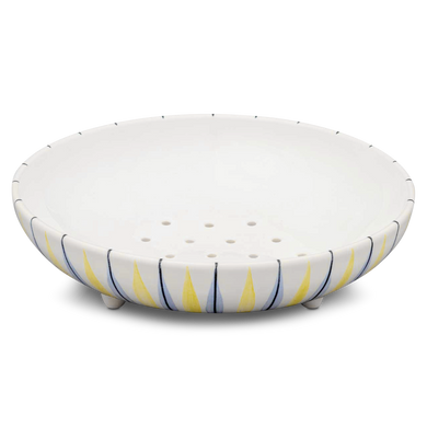 The strainer bowl by Hedwig Bollhagen with the shape number "608AS" enchants with its classic vintage design with timeless sophistication. Just like the slightly larger 608BS variant, the practical colander bowl is functionally convincing all along the line - the 600 gram light manufactured product can not only be used as a ceramic colander for rinsing and draining salad and co., but also cuts a fine figure as a fruit bowl and for various other uses. The 5.5-centimeter-high and 20.5-centimeter-wide 608AS colander bowl features low, wide feet and is decorated with a nostalgic colander hole pattern on the underside. Even grandmother would not have wanted to do without this shapely, multifunctional helper made of handmade ceramic.