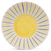 Fayence weiß gelbe Bänder und blaue Striche Glasur glänzend