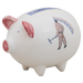 The piggy bank by Hedwig Bollhagen with the form number "1074" is the little sister of the somewhat larger piggy bank with the form number 1073. Characteristic are the egg-shaped body with the pig-typical socket snout, the mounted two ears, four legs and the money slot on the back. Whether cents, emergency pennies or more: with a diameter of 13 centimeters, there is enough space in the belly of the 9.2-centimeter-high piggy bank for coins and small wishes of all kinds. Unfortunately, the 220-gram ceramic piggy bank has no opening for removing money. That much is certain, but this piggy bank is much too good to be slaughtered.