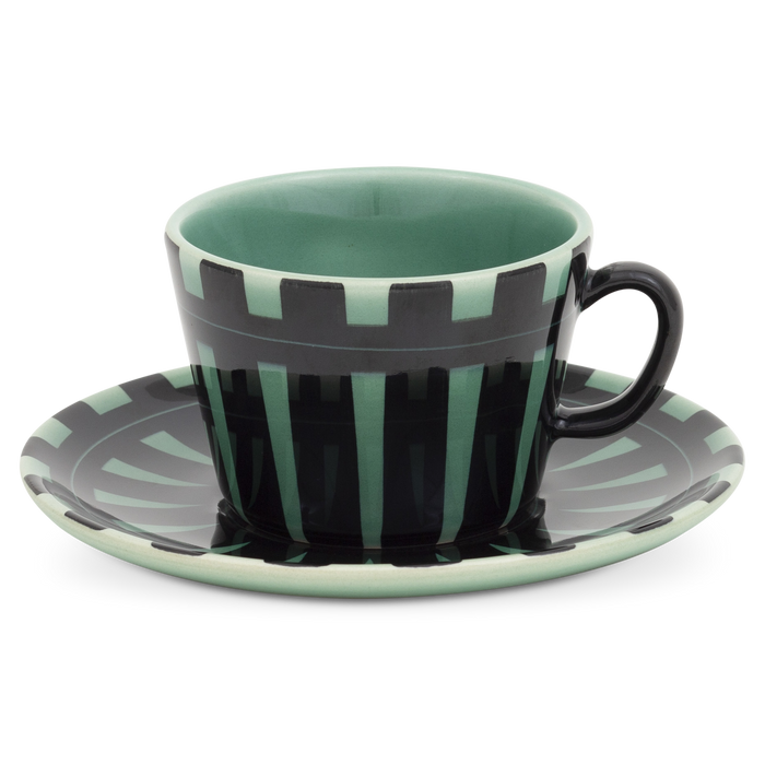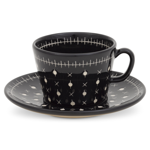 The coffee cup from Hedwig Bollhagen with the shape number "588" convinces with its simple and clear shape. With a capacity of only 0.1 liters, the coffee cup, which weighs 270 grams, is six centimeters low and ten centimeters wide, is probably one of the somewhat smaller of its kind. Characteristic of the two-piece set are the conical body of the cup and the slightly upwardly curved rim of the saucer. Towards the bottom, the vessel finds a firm hold in the circular opening of the saucer. And should a small mishap occur during serving and some of the coffee spill over the rim of the vessel, then at least the hot beverage does not drip onto the table. This much is certain, with the coffee cup from Hedwig Bollhagen, the daily coffee ritual can be celebrated in perfect form.