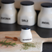 The "Estragon" HB 556 spice jar offers a stylish way to store dried tarragon while preserving its aroma. With its compact size of 8.5 cm and a capacity of 0.13 liters, it is ideal for smaller quantities and reliably protects the spice from moisture thanks to its black, tight-fitting lid. The cream-colored body with the clear, black “ESTRAGON” lettering blends elegantly into any kitchen. This jar is also available for other spices such as pepper, sage, curry, or oregano. For larger quantities such as pasta, rice, tea, or cookies, the larger HB 595 model is recommended. Both tins represent a stylish, durable storage solution that has been a hallmark of the Hedwig Bollhagen Workshops since 1934.